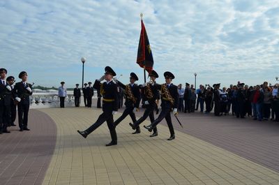 Второй год подряд курсанты, поступившие на первый курс академии, дают торжественную клятву в историческом месте города - у подножия Чкаловской лестницы рядом с катером «Герой».