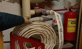 Чтобы понять, что вся система противопожарной безопасности не отвечает требованиям, специалистом быть не надо. Внутренний противопожарный водопровод отключен, трубы местами срезаны, гидранты есть не на всех этажах, а там, где и установлены, не могут быть использованы.