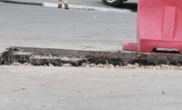 Движению транспорта это не повредило, грунт обвалился вне проезжей части. Место обвала оцеплено, асфальт вокруг ямы срезан, рабочие сейчас засыпают яму песком до дальнейшего принятия решения.