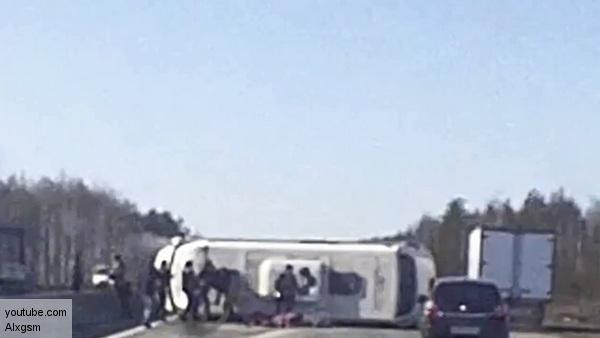 Рейсовый микроавтобус опрокинулся на проезжую часть. По предварительной версии, водитель не справился с управлением.