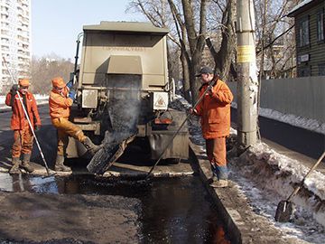 По его словам, ямочный ремонт дорог ведется горячими асфальтобетонными смесями, а также регенерированными смесями с применением прицепа-рециклера. «Для производства работ по ямочному ремонту дорожные предприятия используют семь прицепов-рециклеров. Установка позволяет подготовить асфальтобетонную смесь непосредственно на ремонтируемом участке, а после укладки не требует уплотнения специальными механизмами. Данная технология становится реальной альтернативой практике вынужденного временного устранения ям брусчаткой», — сказал он.