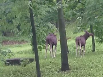 Два диких лося забрели в центр Нижнего Новгорода днем 2 июня. Об этом сообщил пользователь Владислав Крутов в своем видео.