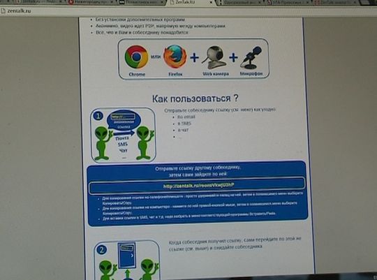 Схема пользования проста. Желающий начать видеобеседу, просто заходит на страницу программы, копирует ее ссылку и отправляет ее собеседнику на телефон в виде смс или на любое устройство,где подключен интернет на базе андроид. Как только тот открывает эту ссылку - видеообщение начинается. Александр показывает, как это работает на практике. При нас звонит другу.