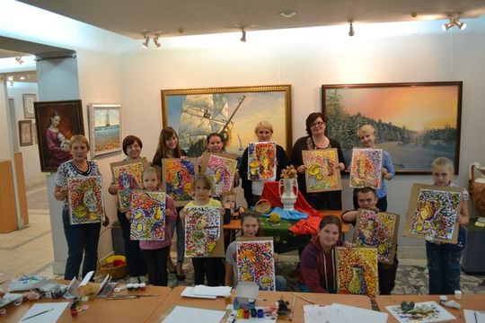Когда ребенку еще только исполняется три года, можно понять, талантлив ли он. Станет ли великим художником, быть может, привнесет в живопись что-то запредельно новое. Так предваряет свой мастер-класс молодой художник Павел Лутаев. Называется он «От кисти до кончиков пальцев». То, чем сейчас занимаются гости мастер-класса в музее Московского района, именуется по-разному - пуантилизм, дивизионизм. Главное, суть у всех названий одна - из точек, раздельных мазков, рождается картина. Художники, даже те, кто берут кисти в руки впервые, должны отказаться от смешивания красок - глаз должен сам это сделать.