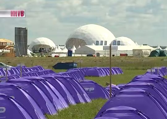 Объектива нашей камеры не хватает, чтобы показать весь размах этого фестиваля. Видимо, нужно снимать с вертолета. Уже с утра население Большого Козино увеличивается в пять раз. По номерам машин на парковке можно изучать географию страны. Москва, Белгород, Самара. В этом году фестиваль шагнул и за пределы страны. Люди не жалеют ни денег, ни времени, чтобы стать участниками грандиозного события и приехать в Нижний Новгород.