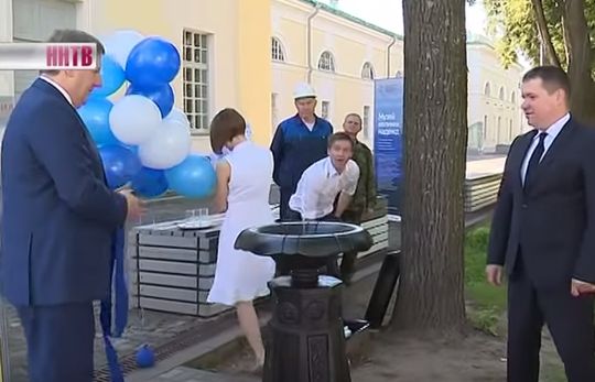 Здесь все атрибуты торжественной церемонии. Покрывало, скрывающее новый объект, руководители города и водоканала, многочисленные журналисты с камерами и диктофонами ну и конечно атласная лента. Помпезных речей и оркестров правда не было. Да и само открытие прошло достаточно быстро, зато с дегустацией.