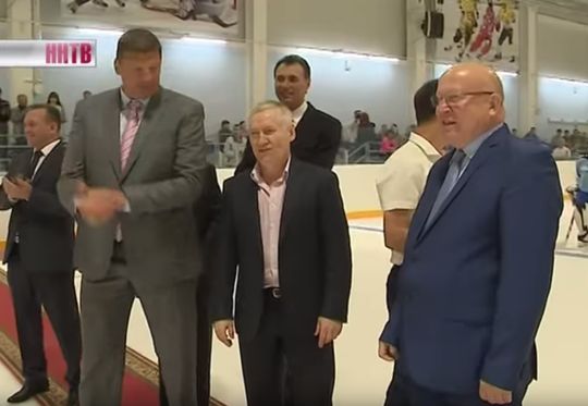 Поддержать начинающих хоккеистов приезжает и глава региона Валерий Шанцев. Вместо того, чтобы занять место на трибуне, выходит на лед, общаться с хоккеистами.