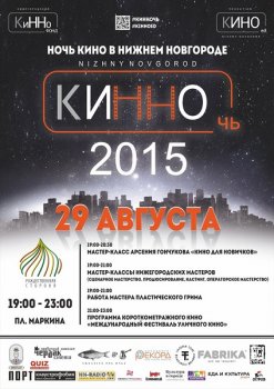 29 августа в 19:00 на площади Маркина откроется городской киномарафон «КиННочь-2015». Мероприятие приурочено к празднованию Дня российского кино. «Летний кинотеатр на Рождественской» станет основной площадкой «КиННочи». Здесь пройдут мастер-классы и творческая встреча с кинорежиссером Арсением Гончуковым («1210», «Сын») и работниками киноиндустрии.