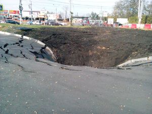Это произошло три дня назад. Сейчас на этом месте огромная воронка, глубиной не менее пяти метров. Ширина провала около 10 метров.