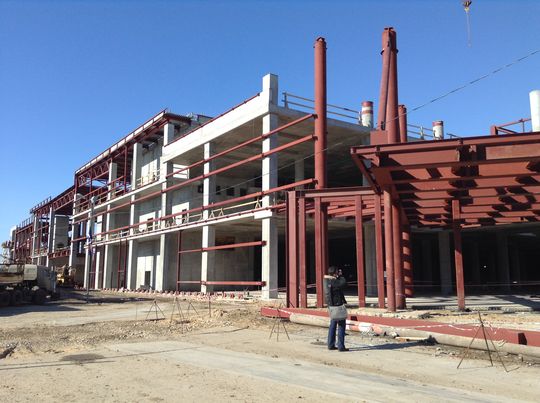 Здание готово на две трети. Строители говорят, что осталось замкнуть тепловой контур и уже можно будет приступать к отделке. Первый рейс через новый терминал планируют принять уже 25 декабря. Тогда к борту самолета уже подадут не трап, а телетрап. Для того, чтобы пассажирам не пришлось терпеть неудобства, строительство идет в две смены.