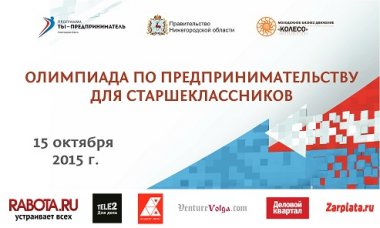 15 октября 2015 года в Нижнем Новгороде в рамках реализации Федеральной программы «Ты-предприниматель» по Нижегородской области пройдет Областная олимпиада по предпринимательству для старшеклассников. Ее участниками станут 120 ребят из 15 районов Нижегородской области. Для участия в Олимпиаде приглашены делегации из школ Арзамасского, Борского, Богородского, Бутурлинского, Б.Мурашкинского, Володарского, Воскресенского, Дальнеконстантиновского, Краснооктябрьского, Павловского, Починковского, Семеновского, Сергачского, Спасского, Шарангского районов, а также – г.Заволжье, г. Дзержинск, г.Семенов.