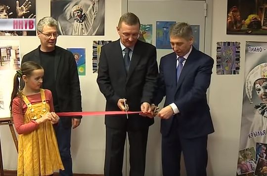 После небольшой экскурсии по открытым мастерским, торжественно разрезана красная ленточка. Это открытие медиа-студии. Директор школы-интерната Владимир Чикишев рассказывает о том, что студия поможет детям обучится новым навыкам, которые пригодятся в дальнейшей жизни.