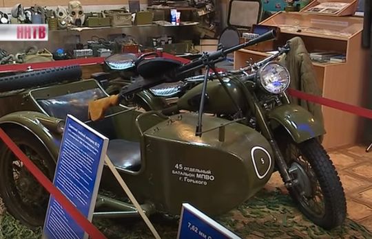 М-72 - советский 300-килограммовый мотоцикл. Выпускался в годы войны на Горьковском мотоциклетном заводе. Пулемёт Максима - родоначальник автоматического оружия. Экспозиция военной техники знакомит с лучшими образцами артиллерийских орудий Великой Отечественной войны. Получается, в этом музее собрана история ПВО, гражданской обороны и средств защиты