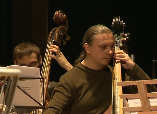 Эта музыка немного напоминает какое-нибудь классическое светское произведение. Не считаете? На самом деле на сцене оперного театра идет репетиция уникальной в своем роде оратории «Страсти по Матфею». Священнослужители совместно с солистами театра в сопровождении струнного оркестра рассказывают о том, через что Сын Божий прошел ради спасения рода человеческого.
