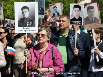 130 тысяч человек приняли участие в празднике в Нижнем Новгороде, 18 тысяч из них прошли в марше «Бессмертного полка». Нарушений порядка зафиксировано не было.