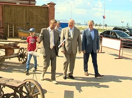 Прогулка по городу губернатора Валерия Шанцева и главного дирижера Мариинского театра Валерия Гергиева начинается у Зачатской башни, с выставки «О колесе, колесах и авто». В экспозиции ретро-судна и автомобили из частных коллекций.