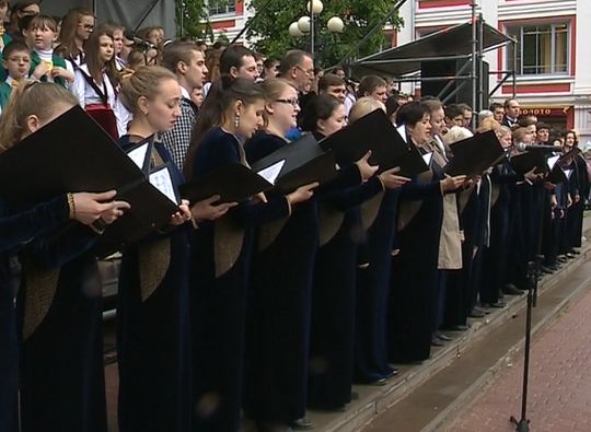 На площади Театральной - камерный хор Губернского оркестра, хоровые коллективы детских музыкальных школ Нижнего Новгорода, а также камерный хор «Нижний Новгород».