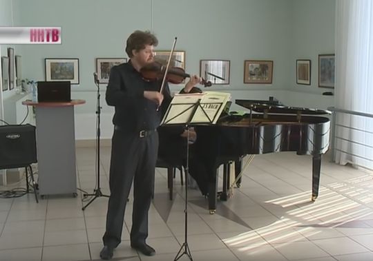 «Весеннюю» сонату Бетховена исполняет отец Антоний Волков. В качестве зрителей - уже по традиции земляки скрипача. Жители рабочего посёлка Воскресенское.