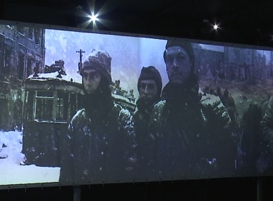 Казалось бы, невозможно за 20 минут рассказать историю Великой Отечественной. Но создателям интерактивной выставки, посвященной этой войне, удалось это сделать. На 40-метровом экране оживают фотографии тех страшных времен. На первых из них - июнь 1941-го. Вот счастливые советские граждане играют в футбол, гуляют в парке. Спокойствие разрушается в один миг, как известно, 22-го июня ровно в 4 часа. С помощью современных технологий зрители выставки переносятся в те годы.