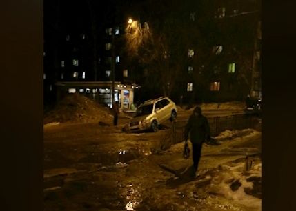 Все дело в том, что зимой здесь проводились работы по замене теплотрассы. В морозную погоду яму закопали, сверху положили брусчатку, которая и просела по во время весенней оттепели. Сегодня утром вокруг ям уже выставили ограждения. Будет ли владелец внедорожника добиваться компенсации, пока неизвестно.
