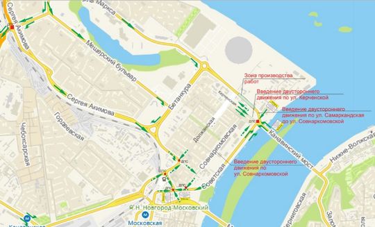 В связи с проведением ремонтных работ, движение на съезде с Канавинского моста будет изменено.Об этом сообщили в МКУ "Центр организации дорожного движения Нижнего Новгорода".