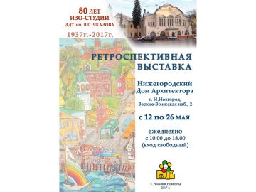 Выставка, посвященная 80-летию Дворца детского творчества им В. П. Чкалова и ИЗО-студии как старейшего коллектива Дворца, проходит в нижегородском Доме архитектора.