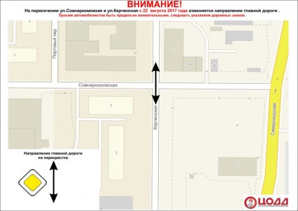 С 22 августа изменится схема движения на пересечении улиц Керченская и Совнаркомовская