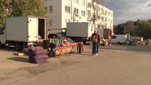 Артём Катков, корреспондент: «Сейчас мы находимся на площадке, которая должна была быть отдана под ярмарку выходного дня. Но, как мы видим, сзади меня сидит только одна бабушка и торгует чесноком, и больше здесь никого нет...»