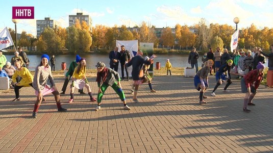 Эти веселые танцы - в честь посадки хвойной аллеи у ФОКа "Северная звезда" в Автозаводском районе. Лопаты в руки берут школьники и юные спортсмены, взрослые - руководят.