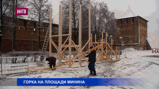 На площади Минина и Пожарского, у главной нижегородской ёлки возводят горку19.12.2017  12:40  — ННТВ (видео)