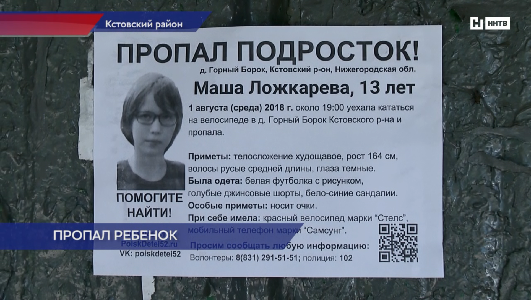 География поисков 13-летней Маши Ложкаревой значительно расширена06.08.2018  14:34  — ННТВ (видео)