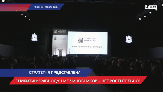 Мероприятие, посвященное представлению утвержденной стратегией развития Нижегородской области, начинается минута в минуту. Гости, среди которых, общественники, политики и чиновники, заранее занимают места в первом павильоне Нижегородской ярмарки. На часах 15:30. Начинается прямая трансляция на новом нижегородском телевидении. Настроение у участников мероприятие отличное. По-другому быть не может. Губернатор не только подводит итоги года, но и представляет документ, согласно которому, регион будет развиваться ближайшие несколько лет. Начинается, как и положено с приветственных слов.