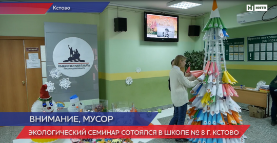Оказывается, новогодний шедевр можно сделать даже из черновиков, и при этом позаботиться о природе. Экологическая безопасность в городе - главная тема большого семинара, который прошел в 8 школе города Кстова. Например, здесь пятиклассники смотрели документальный фильм о переработке мусора.
