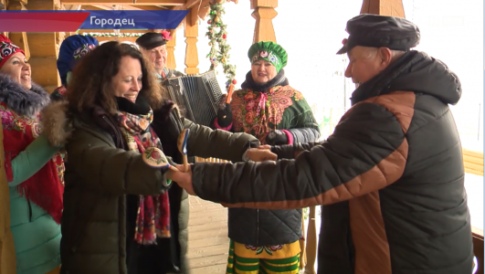 К приему высоких гостей в городе мастеров готовились с самого утра. Блины и самовар на столе, артисты распелись и даже раскрутили карусель желаний, чтобы все прошло хорошо.