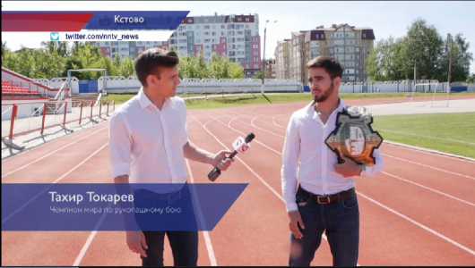 Тахир Токарев-чемпион мира по рукопашному бою: “Слова благодарности всем, кто меня поддерживал и конечно тренеру. И конечно моему тренеру, перед соревнованиями за полтора месяца получил травму, которая поставила вопрос буду ли я участвовать. И как раз он взял ответственность за мою подготовку”.