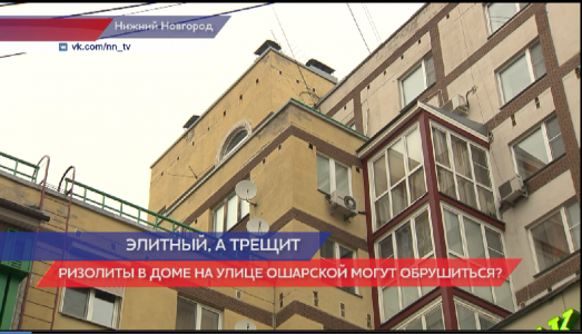 Элитный дом на улице Ошарской в Нижнем Новгороде трещит по швам. Здание имеет Ризолиты. Это жилая часть здания, выступающая за основную линию фасада. На опорных конструкциях, где размещён блок с квартирами, ведёт работу подрядная организация. Судя по табличке, установленной на объекте - ведётся капитальный ремонт фундамента ризалита. Жильцы рассказывают, что первые трещины на фасаде и в квартирах начали появляться в 2014-м году. Установленные маячки выявляли расхождение швов. Дому 20 лет, однако именно, плановые работы по укреплению фундамента - могли ухудшить ситуацию. В здании 121 квартира. В 4-х ризалитных частях 16 жилых помещений, пока не известно, происходит ли подобная ситуация в других вынесенных секциях. В министерстве чрезвычайных ситуаций уже создана профильная комиссия которая взяла ситуацию под контроль, не исключён вариант введения режима ЧС с принудительным выселением граждан.