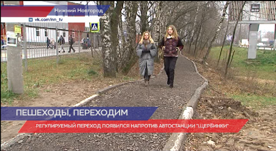Напротив автостанции "Щербинки" в Приокском районе появился регулируемый пешеходный переход. Безопасная переправа будет востребована у жителей ближайшей деревни Ольгино. Именно они обратились с просьбой об установке дополнительных светофоров на встрече с мэром Владимиром Пановым. Жители деревни признавались, что нарушают правила дорожного движения и переходят к автостанции в неположенном месте. С момента обращения к мэру до начала работы перехода прошло 10 дней. Рядом с автостанцией временно проложили дорожку из гранулята. Говорят, это временная мера.