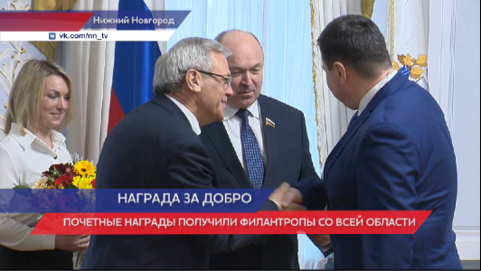 Почетную награду получили меценаты, которые уже много лет помогают объединениям ветеранов, инвалидов, детским домам и больницам. В торжественной обстановке благотворителей земли Нижегородской лично наградил вице-губернатор области Евгений Люлин. Кроме того, поощрять благотворителей будут не только наградами. Поддерживать значимую деятельность продолжат и на законодательном уровне. Организаторы мероприятия отмечают, что за 15 лет существования награды, число добрых и бескорыстных людей в области выросло в несколько раз.