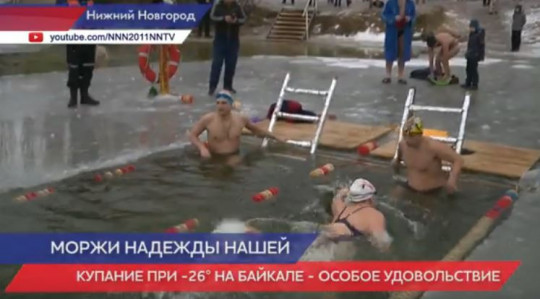 На традиционном зимнем заплыве — более 50-ти человек. Приехали гости из Выксы, из Павлова.