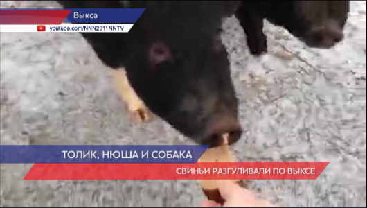 Свидетелями необычного зрелища стали на днях жители Выксы – прямо по улицам города разгуливала компания черных вьетнамских свиней. Об этом пишет Комсомольская правда. Хрюшки побывали в Выксунском парке, возле здания администрации и посетили стадион «Металлург». Символ уходящего года вызвал интерес и внимание горожан. Это трогательное видео вызвало множество откликов в социальных сетях. Нижегородцы умилялись доверчивости хрюшек и трепетному отношению со стороны сопровождавшей их повсюду собаки. Сейчас хрюшки пойманы и возвращены хозяину.