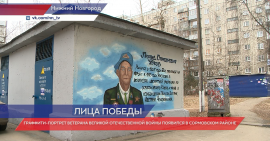 Два художника, неделя работы - и на стене неприметной трансформаторной будки появился портрет ветерана Великой Отечественной войны, участника Днепровской десантной операции 1943 года, заслуженного ветерана Нижегородской области и почетного ветерана Нижнего Новгорода Жукова Леонида Степановича. Портрет в стиле граффити создан благодаря активистам общественной организации «Волонтеры Победы».