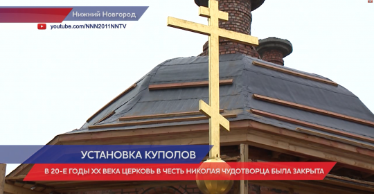Верующие уверены, теперь церковь будет видно даже с Волги. 3 золотых купола устанавливают на места.