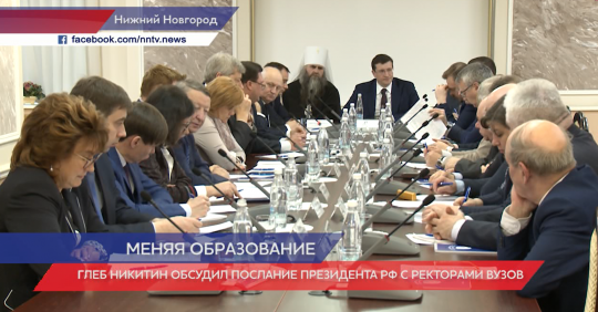 На встрече - ректоры всех основных ВУЗов области. На повестке - обсуждение послания Президента России Владимира Путина к Федеральному собранию. В Послании Владимир Путин особое внимание уделил теме российских вузов и развития науки. Глеб Никитин отметил, что Нижегородская область была и остаётся одним из ведущих российских промышленных и научных центров. Нужно, чтобы так было и впредь, заключил Губернатор. Владимир Путин также поставил задачу создания Научно-образовательных центров мирового уровня. Нижегородской области удалось получить статус одного из пяти пилотных регионов, где в рамках нацпроекта «Наука» создан научно-образовательный центр мирового уровня. Уже в прошлом году регион смог реализовать ряд масштабных проектов и получить неплохие результаты, отметил Глеб Никитин.