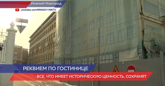 Александра Шеломцева, корреспондент: «В этом здании, укутанном зеленой сеткой и разноцветными тентами еще узнается сталинская архитектура, пример конструктивизма и ампира. В ближайшее время гостиница «Россия» перестанет существовать, приступят к демонтажу. Что-то удастся сохранить, что-то исчезнет навсегда».