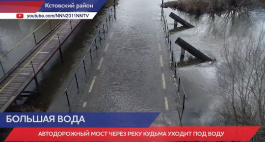 Мост через Кудьму по автодороге «Ройка-Чаглава» Кстовского района постепенно уходит под воду. Сейчас отметка 30 см, в пик вода поднимется на уровень в 1,2 – 1,3 м. И тогда транспортное сообщение с ближайшим населённым пунктом, бывшим подсобным хозяйством Кудьма, будет прервано.