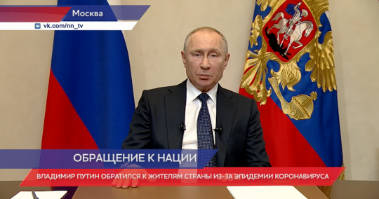 Владимир Путин: «Длинные выходные предусмотрены именно для того, чтобы снизить скорость распространения болезни. Обращаюсь ко всем гражданам страны. Давайте не будем поступать, полагаясь на наше русское «авось». Не думайте, пожалуйста, как у нас бывает: «А! Меня это не коснется». Это может коснуться каждого. И тогда то, что происходит сегодня во многих западных странах, и в Европе, и за океаном, может стать нашим ближайшим будущим. Все рекомендации необходимо обязательно соблюдать».