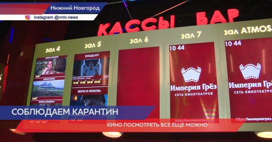 Даниил Воронов, корреспондент: «Как мы выяснили, кино сейчас посмотреть все-таки можно. Руководство кинотеатра от каких-либо официальных комментариев по неизвестной причине отказалось, однако они заверили нас, что применены усиленные меры дезинфекции и сокращено количество залов. Работают также и заведения общепита и развлекательные заведения. Однако мы настоятельно не рекомендуем посещать общественные места. Все-таки лучшей профилактикой сейчас является самоизоляция».