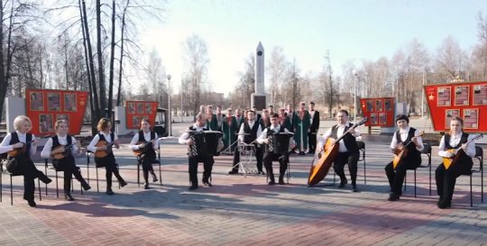 В Марий Эл песню “День Победы” на марийском языке исполняют солисты Марийской государственной капеллы им. Алексея Искандарова, причем под живой аккомпанемент музыкантов Государственного оркестра народных инструментов "Марий кундем".
