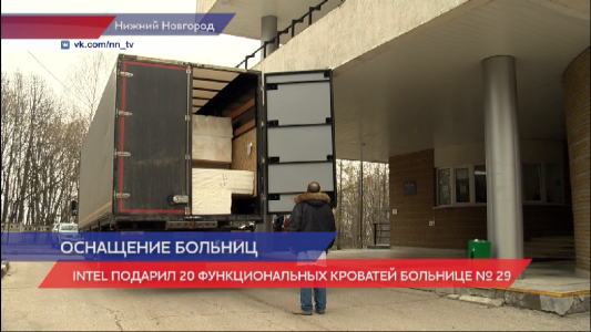 Коробку за коробкой заносят в 29-ую больницу Нижнего Новгорода, перепрофилированную под лечение пациентов с новой коронавирусной инфекцией. В упаковках 20 функциональных кроватей, это подарок от компании Intel. Своевременная и неоценимая помощь социально ориентированного бизнеса. Такие современные постели позволят лечить пациентов в лучших условиях.