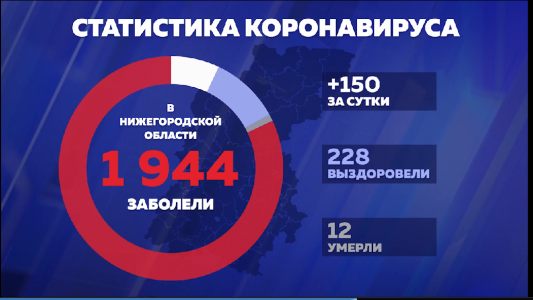 В Нижегородской области подтверждено еще 150 случаев заражения коронавирусом. общее количество заболевших достигло отметки в 1944 человека. Выздоровело еще 44 нижегородца. Итого 228 человек уже выписаны. Летальных случаев за последние 24 часа не зафиксировано. Более 74 тысяч человек сдали тесты на коронавирус в Нижегородской области.